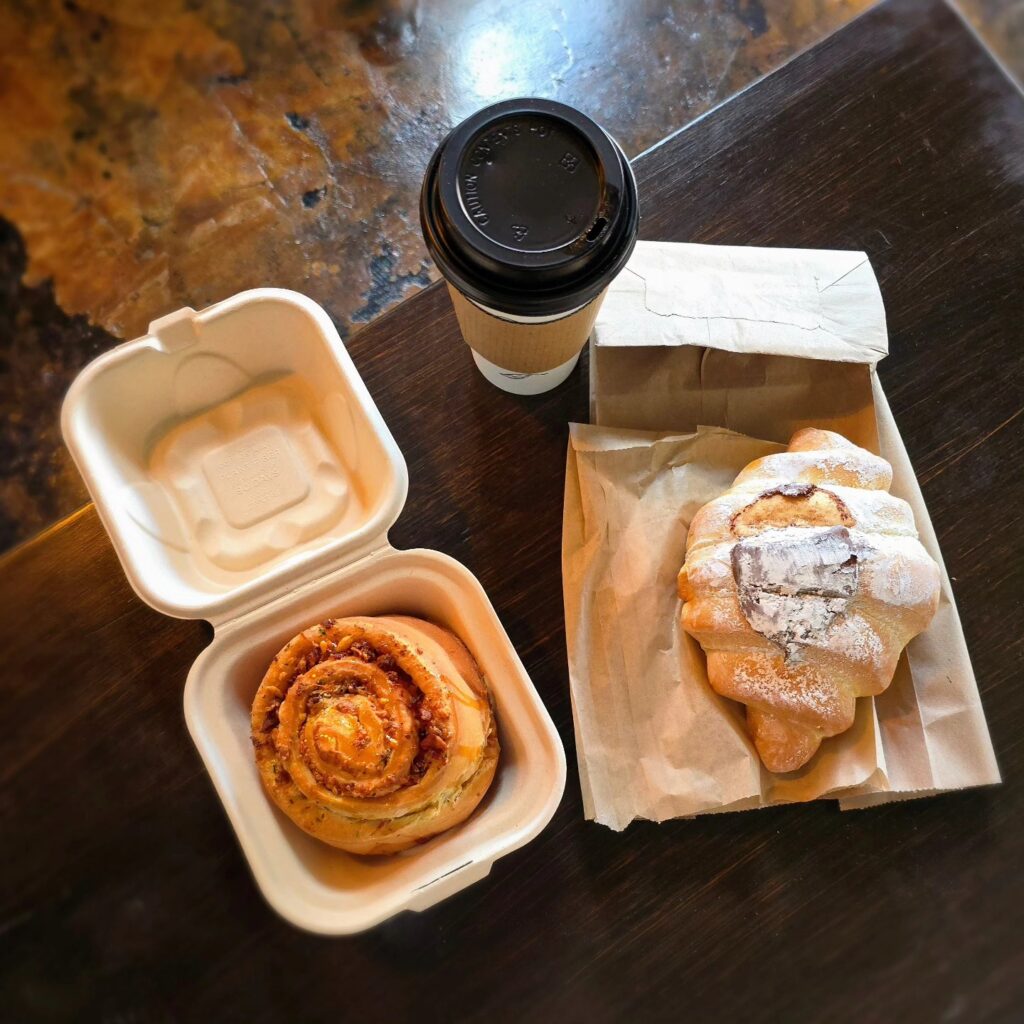 Variety of homemade sweet & savory offerings including cookies, lemon bars, kolaches, churro buns, cheesecake, muffins, pop tarts, brownies, breads, gluten-free options, and much more. Check out their website for information. Relaxing atmosphere with greenery & natural lighting. Great spot for studying or group meet-ups. We love sitting outside on a nice morning to enjoy delicious pastries!