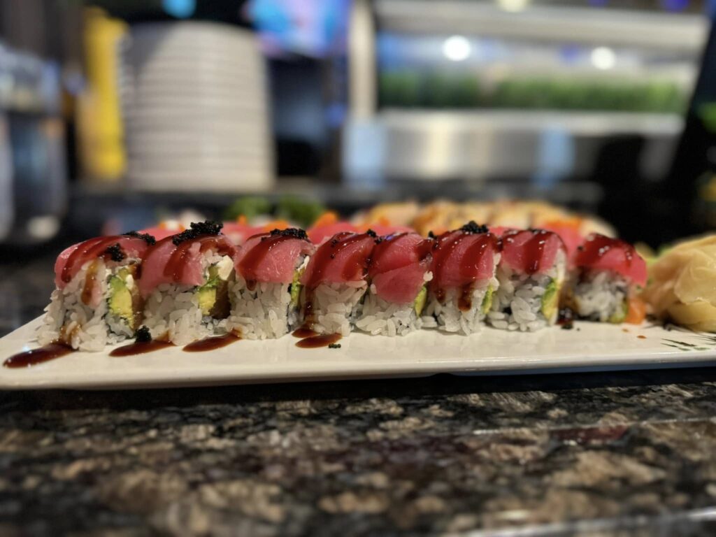 The menu is large and ranges from sushi (often touted as the best sushi in town) to hibachi and teriyaki entrees. There are great lunch specials! I went with the hibachi chicken entree which ended up being a large amount food (I’m not complaining!). You are served Japanese onion soup, a salad, chicken, veggies, and rice (fried or steamed). We also had sushi – California Roll, Spicy Crab, and Tuna Roll – all of which were great!