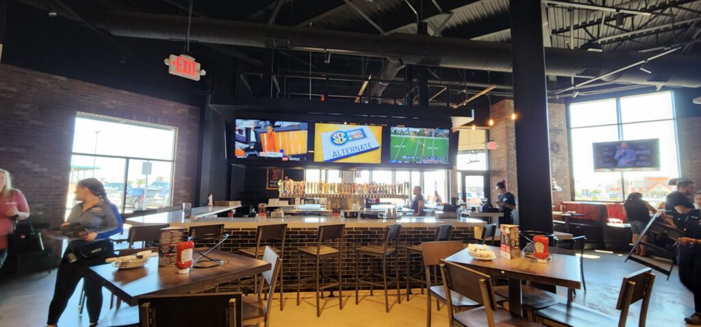 Great lively atmosphere with plenty of TVs, music, and a patio. Good amount of table, booth, and bar seating. Great place for a night out with friends or a spot to watch Texas Tech sports!