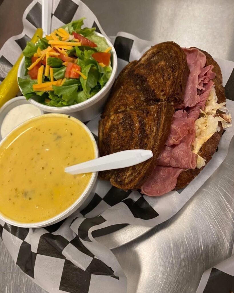 Menu items include the usual sandwich options, hot or cold, with sides of chips, pasta, or side salad. This is a great spot for a quick and easy lunch with co-workers or friends.