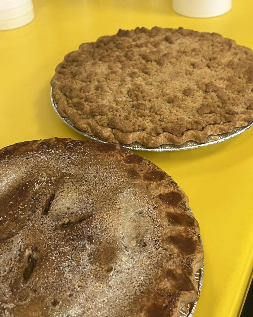 You’ll be amazed at all of the options in the pie case. A standard pie is 9″… Honeycomb pies are 10″. Flavors include your standards such as cherry, apple, peach, pecan, as well as chocolate dream, brownie bottom, and millionaire. We picked up the chocolate dream for a family function, and it was a hit! It comfortably fed 6 adults and 2 kids.